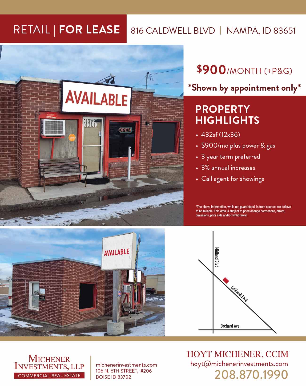 Agent: Hoyt Michener, CCIMRetail For Lease, 432 sfCall Agent for Showings